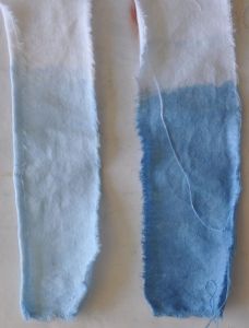 The 123vat though did not oxidize, just came out with this “stain”. The chemical vat did oxidize, but the colour depth is sad. Starting to think that though the old vat *looks* impossible, i *might* be able to revive it again one more time. There’s still so much indigo in it, that i wonder if a big kick just won’t get it going again.