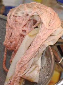 Nope, ain’t gonna bother anymore. I suspect you do have to use the Hass avocados, reputedly the best for natural dyeing, but at 2-4 bucks each, that’s much more expensive than my grocery/natural dye budget allows for! WOF is 2:1, so that’s a LOT of pits that have to be saved… I buy bags of the smaller whateverthevariety is for 3 bucks on sale, usually getting 4-6, because i do like eating them, but all this effort is a waste of time for me. I envy the deep pinks and russet corals others get, but nope, nope, nope.