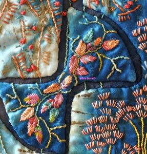 They were done in these piece with “orts”, leftover bits of thread no longer than 3″–i want one thread skeins that look and act like this!