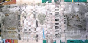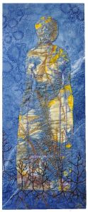 Below, Glacier themed 20s flapper frock with ramie, stencilling and cracked ice lace.