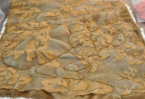 One disappointing (in a sense) thing is that the result is not the same as the work done this way on “A Birth of Silence”. (See previous post.) The rust on that particular piece stiffened the fabric for more dimension, something that is not featured much on any of this piece. I may have to manipulate it more when the time comes to attach to the background, or maybe it will be fine. I think the backing fabric i used this time too is thinner or flatter than the one used in ABOS as well, but c’est la vie!
