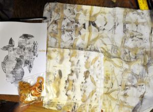 As i work with this large expanse, i’m better appreciating the nuances of colour created by chemical reactions between rust, potassium permanganate and brazilwood. Pinks, purples, teeny bits of blue and charcoal, russets and washed out reds. Amazing how that works, and really wondering how i managed to get such clean whites too!