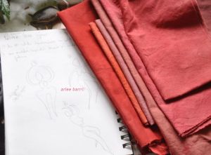 My “epiphany” is gelling, if indeed epiphanies do gel. Reflective searching thought, and research has led back to some ideas, but unless i actually start somewhere, nothing will take form. Simple, right? There are many many parts i wish to use again: the studio worktable is a jumble of sketches, fabrics, notes and paper scraps.