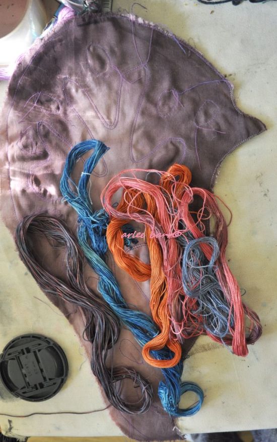 I had this bright idea to use several of my naturally dyed threads, and while the colourway would have worked, it took too much away from the figure, putting focus on the threads instead. I have gone to my commercially dyed threads in rebuttal 🙂 As i’ve always said, colour is colour–yes, brown is too a colour!—and i’m not about to get all precious about just naturally dyed, so all my “bland, boring, beige” browns in all their glorious permutations are being hauled out.