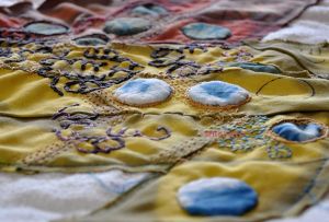 Though there are elements of Swati and Uzbeki in this, i’m also going for some Sindhi, Kutch–and Me 🙂 For easy reference, by no means comprehensive, but still useful, check out the Wikipedia page “Embroidery of India”, for an overview. I have no desire to emulate any of these exactly: instead i am doing exercises to broaden my use of stitch, and to learn either new stitches, or new ways to use variations of them, an in depth self directed workshop.