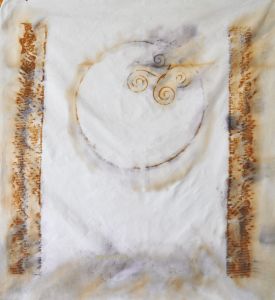 I want to try more shibori, and pole wrapping, more combinations of things, and more deliberate placements of dye and adjuncts like rust and leaf.