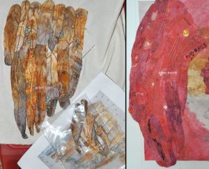 With the timeframe i’d had left to get work done for the end of residency show, i decided instead that since the owner of this work isn’t picking it up until near the end of September, that i could show this instead. Created with fabrics during my 2016 residency, and worked on during the 2017 residency, it suits perfectly in that respect as work done DURING res (because i have seen work in those shows that had nothing to do with res…which kind of defeats the purpose of the exhibition IMHO), and also, as celebrating 10 years of Contextural, it was a perfect opportunity for me to see and show how *i* have evolved in 10 years. (Though i have been a member for only 8!)