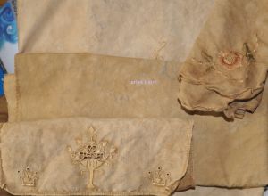 That’s where the Dye Dungeon is again, in the back part near what is the old cistern, long boarded and bricked up, and containing we are sure, a body or two…..There’s a tiny backroom with lots of old wood shelves for all my dye supplies, natural and un-natural chemical/synthetic, plenty of old pull string lights, and a concrete floor. Nothing fancy down there at all, just space where the dog never goes (she’s afraid of the creepy old narrow stairs down), and the cat rarely, as “it’s boring, so boring”. (You know how cats are.) I *did* have it set up 7 years ago, but admittedly didn’t do as much then as i had thought i would. I’m afraid right now if i keep using the studio, that the mess will become a wet one, with pots and jars all over, and inquisitive studio assistants, Slapshot (official studio cat) and Nessie the DogFaced Girl (resident i-go-everywhere-Mom-is dog).