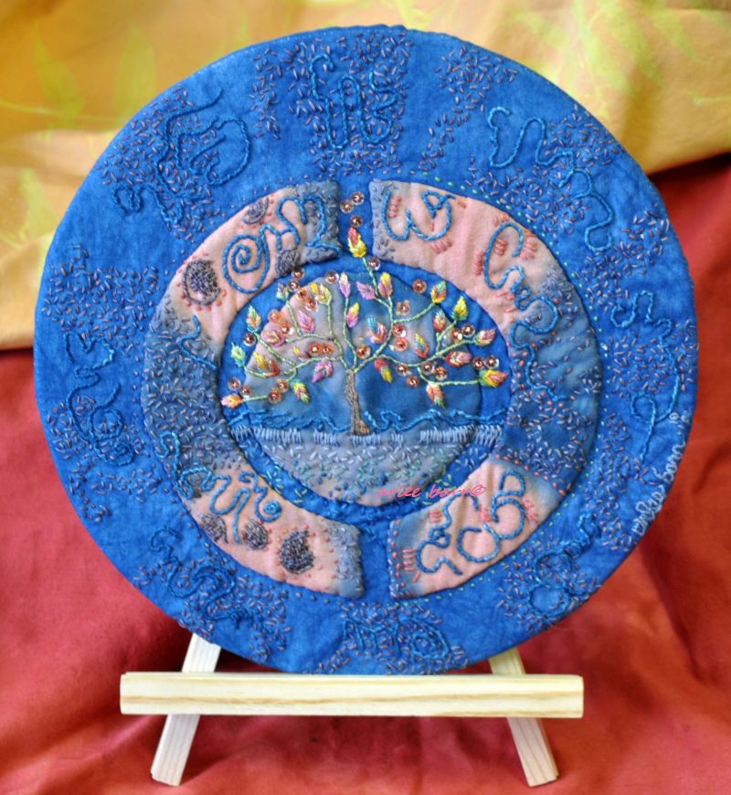 The shop is empty of fabrics, so it was time to gear up again. I used an old piece from 2009 as a colour inspiration guide!