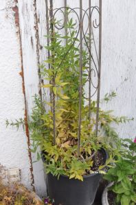 It grew to about 3.5 feet last year, and survived the first 3 frosts, before i heeled it into the garden in October. That means, i dug a hole deep enough for the pot, sank it to its rim, then mulched with newspaper, garden debris and it’s own stalks. (I also removed the trellis obelisk, as metal conducts cold and i didn’t want the roots “injected” with -20 to -40 temperatures!)