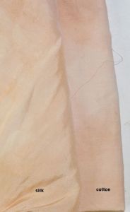 Technically, i should have decanted into two pots, and dyed separately, as cotton (cellulose) and silk (protein) have different uptakes.