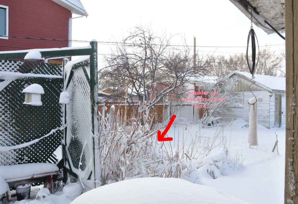 Since madder is a “crop” that doesn’t get harvested until it’s third year, i’m hoping too that the roots have survived, as this is the summer i’m supposed to start using it. I have three scraggly little plants inside, cuttings in the fall from the mother plant that took root, but having to wait another three years for them? POOP.
