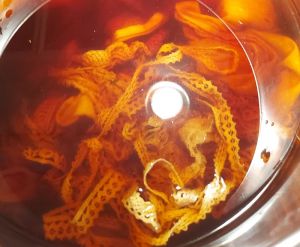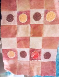 Here’s another thing i love about natural dyes: NUANCE. These two photos are of the same pack of goodies! Taken at different times of the day, the light conditions really show the subtlety of the colour components that make up each dye. Below, these are mixed batches of cochineal, madder and solidago. HOT CRAYONS!