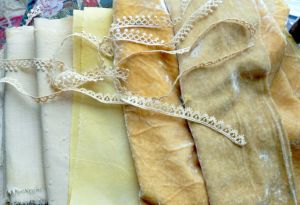 Below, the two on the left are linen, quite disappointing! The linen i ordered before Christmas is crappy quality, stiff and feels cheap. I know linen is supposedly harder to dye because of the plant waxes and pectins, but the results were abysmal! I followed all my usual protocols so not sure what the difference was. *Usually* i find rhubarb, whether root or leaves, somewhat inhibits the uptake of dyes……… For that reason, i never use the leaves anymore. I think it’s the oxalic acid, but also would suspect the roots have more than the leaves, so it’s a mystery!
