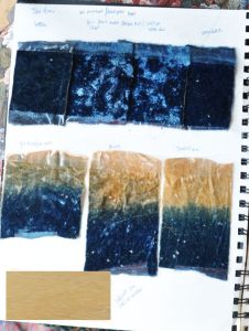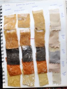 So, did i lose you with that highly detailed ireallydon’tgiveashitphotoijustlikecoloursandb? 🙂 (I myself quite like the orangey soda ash results, and the iron.) This is how we roll, us natural dyers!!!! BUT, once we know the general outcome of all those steps, we can play confidently and happily, mixing, mixing more, and mixing again. It’s not just a matter of throwing an avocado in a pot with some pretty muslin 🙂 And more tests will now be done, in overdyeing with *other* dyes: quebracho rojo, cutch, madder, cochineal, etc etc etc.