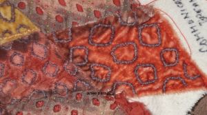 The diamond above has been backstitched then whipped, and gives you a very tactile surface, visually and haptically! You can also see the white cotton flannelette i used to back it for stabilization.