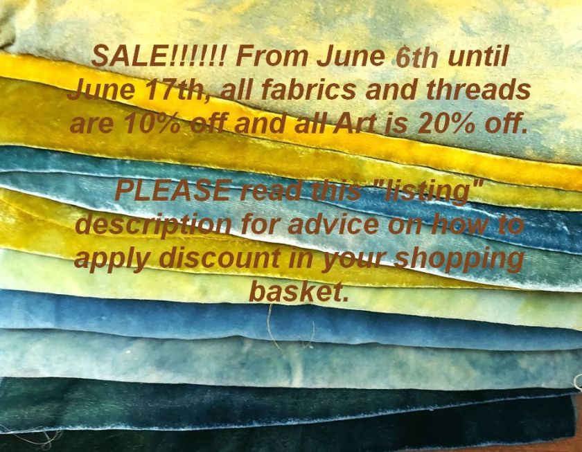 To celebrate this, i will be having a “12 days of the 12th FybreSpace Anniversary Sale”, starting August 4th and concluding on August 23rd. All fabrics and threads will be 15% off and all Art 30% off. My prices are in Canadian dollars, and as always, i refund any extra shipping paid.