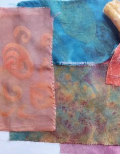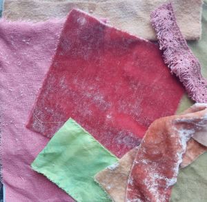 As to the shop, i have finally decided to “standardize” the size of fabrics offered. My velvets have always been either 6×6, 6×12 or 12×12, and i think that’s the way to go–6×6″ are small enough pieces to offer a variety for a reasonable price and be big enough to use and appreciate, and the 2 larger sizes (still very reasonable 🙂 ) for more impact in your work. I cringe sometimes (OFTEN) when i see the mingy bits some offer for a lot more coin (and in US to boot) and with no identifying dyes listed, just “botanical/plant/natural/vegetable dyed”…………
