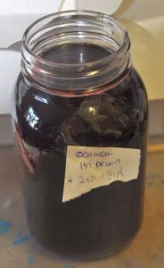 I have bags of premordanted fabrics ready, from the basic tannin/alum, to rhubarb leaf, titanium oxalate, iron, soda ash, alum alone, combinations thereof of whatever, all suited to the type of fibre (cellulose vs protein) and on the stove is a batch of pomegranate readying for use.Β I’m still doing the Summer of Madder (Study) and its adjunct project, but the ecoprinting will be incorporated into that as well.