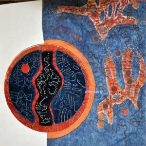 Yesterday i took it down to the Dye Dungeon (where my studio is), and cut a piece out of it, then pieced back in some madder/marigold dyed linen. It’s started to sing now.