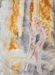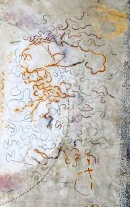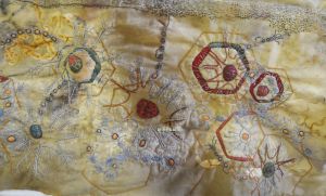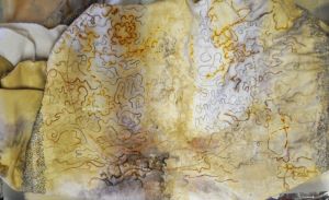 I’ve gone back to the idea of the stitched sample (which will become a small piece on its own, as i quite like it), for the colouring and the “flavour”. Less is more.