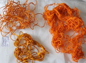 Pale, but pretty, i still like these shades, but now that i’m getting more serious (ie FOLLOWING THE INSTRUCTIONS–though there’s always room for experimentation), i lucked into actual Annatto seeds, thanks to my local dye and textile friend, Susan, who got these for me. And the cost is pretty much the same per OUNCE! By the way, if you really really REALLY like orange shades, you can buy Annatto seeds on AliBaba by THE METRIC TON for a mere 700US.