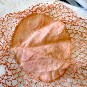 Below, previously madder dyed cotton doily: