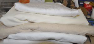 The top piece is my favoured cotton flannellette, used for stabilizing all of my work, *as i work it. Sometimes more expensive than the dyeable cottons!!