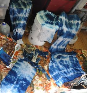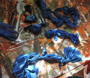 GAG. You know that garbagey, something’s-dead-and-liquescing smell that tells you there is something rotten in the State of Denmark? I searched the entire house yesterday, thinking i’d find a decaying apple, a bag of decomposing rose leaves or an ancient pizza crust maybe that the DogFaced Girl had stashed. Turns out it was the soymilk i had made up for mordanting fabrics. GAG. Into the basement with that! I have one more dip to do tonight and then that crud is getting flushed!!!!!! GAG. Fortunately too, the Dye Dungeon is quite cool, the basement of a 107 year old house after all, and nothing is wafting up through the air vents!