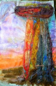 What makes something simple? Minimal colour, minimal texture, big details or small? Clean lines, perfect angles, closed shapes? Archetypal symbols, personal interpretations of symbols, no symbols? (That’s a non issue the “no symbols”: somebody somewhere is going to read something into it.) One swoop on a colour field? No flowers, frillies or lacies? One technique? Maximum ℑ/⊇/ℜ**** techniques (that merge, don’t fight)?