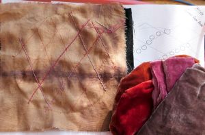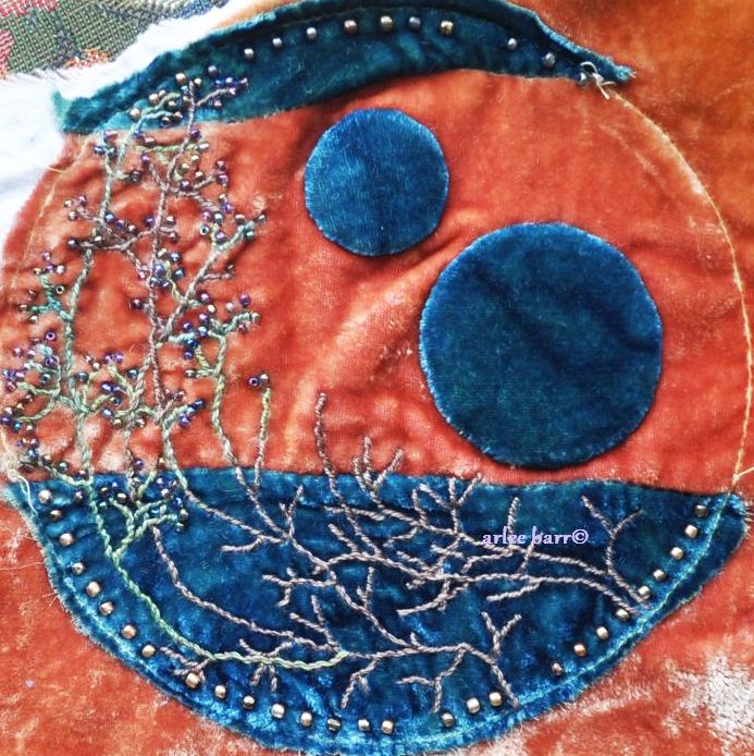 Now these velvets, these natural dyes, oh my. Seems such a waste to toss the little bits, and realizing as i was cutting more moons, that there were still “useable” bits. So i made *more* moons *from* them, and i have a list of other little things i’d like to make too.