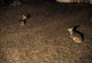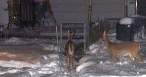 The deer visit regularly at night, usually a Mama and her two babies, though Greyman unsuspectingly walked out late one night, and just about into the butt end of a buck!