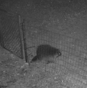 This is the crucial photo, but alas, the camera didn’t catch when he fell off the top of the fence, and lay there stunned for a few seconds! I wanted to run out and check him, but how does one pick up a porcupine and set him back on his feet?????