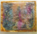 Ghostwriting, 2010, 18″x16″, compost dyed cotton with appliqued vintage laces. Hand and machine embroidery, reverse applique, beading. In Private Collection.