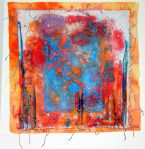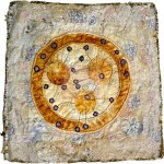 Hoodoo Sky, 2009, painted cotton, hand and machine embroidery, beading, 23×23″